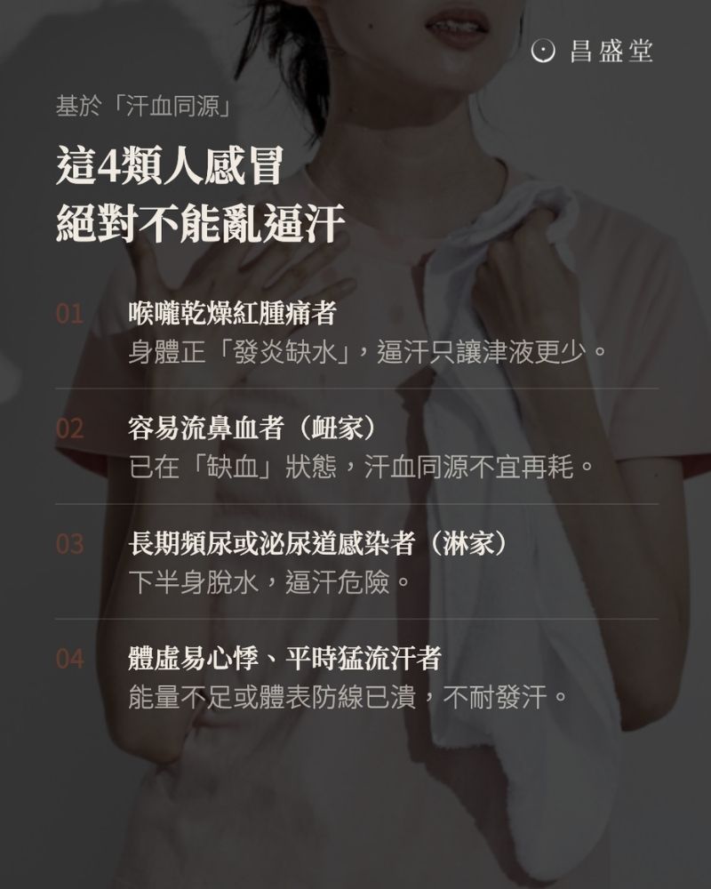 基於「汗血同源」的原則,若是身體有下面這些狀況,就不太適合透過發汗的方式來處理感冒