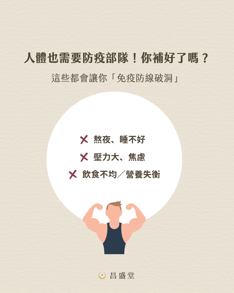 人體的免疫系統就像防疫部隊,天天在對抗外來的細菌與病毒。如果生活作息不正常、壓力大、飲食失衡或長期睡眠不足,這道防線也會被削弱。