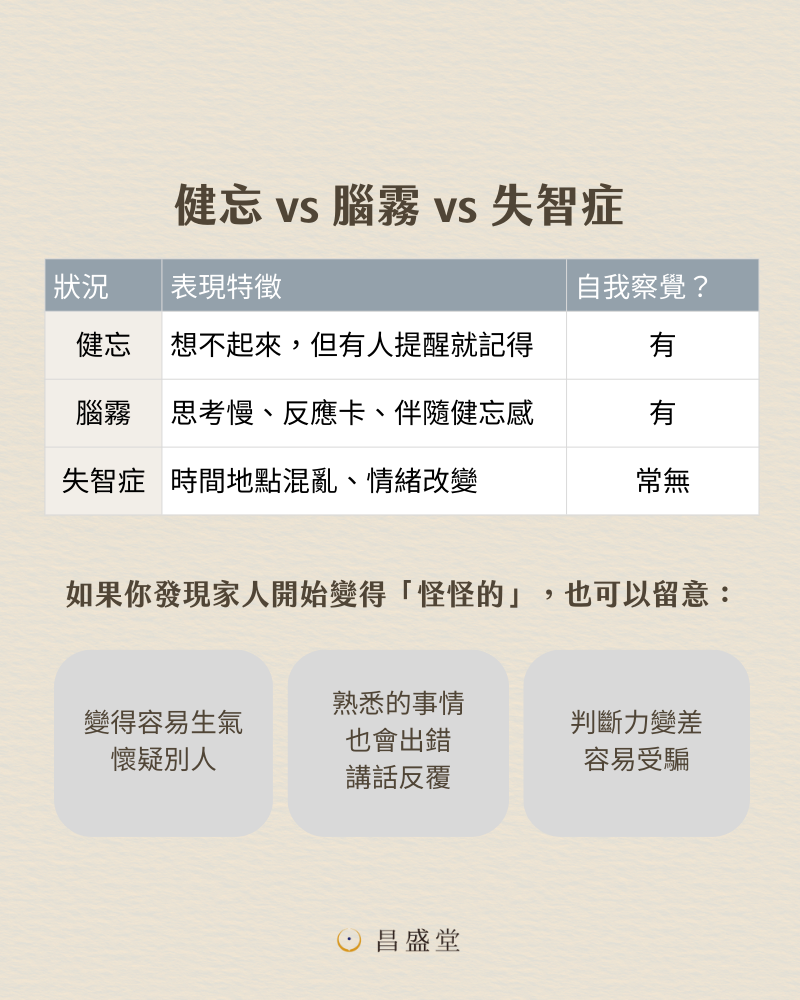 ✔️ 簡單記法:有自覺忘記的,多半不是失智;沒有自覺但越來越混亂的,才要特別注意。